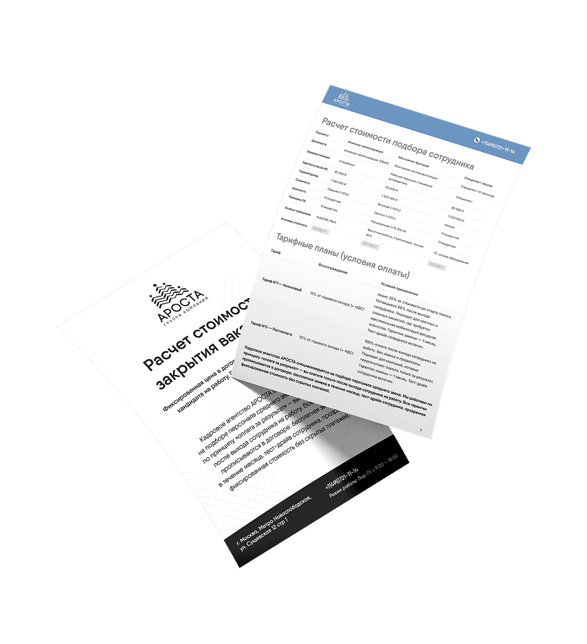 Получите расчет стоимости закрытия вакансии за 14 дней с гарантией замены в течение 1 месяца